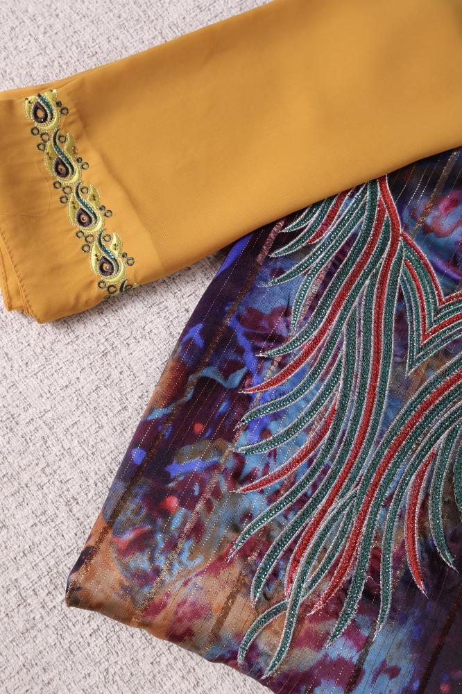 التطريز: خطوط ذهبية طولية.