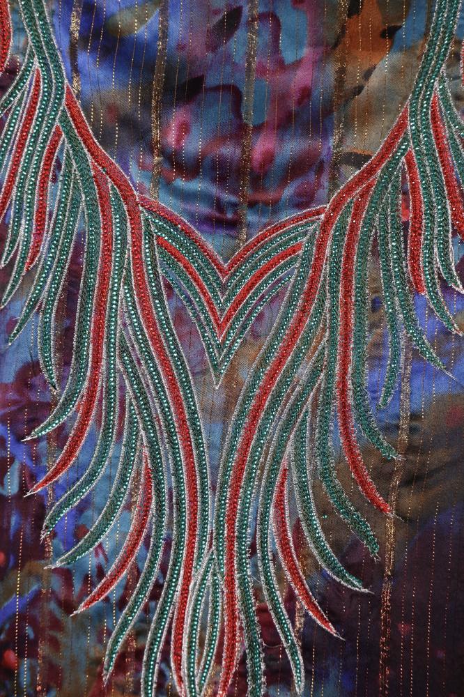 صدر بتطريز كريستال باللون الأحمر والأخضر.
